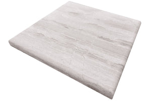 The standard finishes for pavers and copings are smooth sandblasted (sandblasted and brushed), fine sandblasted, sandblasted, antiquated and tumbled. The standard thicknesses are 2 and 3 cm.