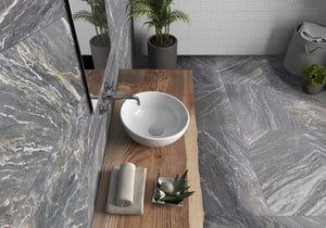 Nordic Sky is a grey marble with accents of blue and white. Reminiscent of northern skies, North Sky's directional inner flow elevates the dynamism and drive. Due to its outstanding structural properties, it's an ideal choice for interior flooring, preserving its shine as in its first day of installment. Available in small and medium format. Please consult for large format Nordic Sky tiles.